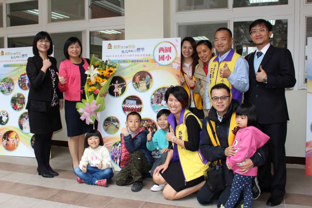 興德國小團隊歡喜領取標竿學校證書與獎牌 西園國小團隊與標竿星光版合影